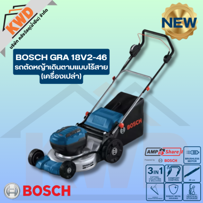 BOSCH GRA 18V2-46 รถตัดหญ้าเดินตามแบบไร้สาย 18V (เครื่องเปล่า) คุณสมบัติสินค้า -มอเตอร์ไร้แปรงถ่าน BITURBO Brushless ใช้พลังจากแบตเตอรี่ 18V สองก้อน ให้ประสิทธิภาพทรงพลังในการทำงาน ใช้งานได้ต่อเนื่องยาวนานและมีอายุการใช้งานที่นานยิ่งขึ้น -ฝาครอบโลหะดีไซน์ทนทานเป็นพิเศษ ตอบโจทย์สำหรับงานตัดหญ้าที่หนักหน่วง -ทำงานได้สะดวกด้วยเส้นผ่านศูนย์กลางการตัด 46 ซม. ปรับระดับความสูงของการตัดได้อย่างง่ายดายถึง 2 ระดับ พร้อมมือจับแบบพับลงได้จึงไม่เปลืองพื้นที่จัดเก็บในแนวตั้ง