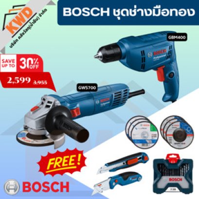 BOSCH ชุดช่างมือทอง GWS700+GBM400 ราคาพิเศษยกชุด พร้อมของแถม PRO Q3/2025 ชุดรวมสินค้าจาก BOSCH ของแท้ ลงทะเบียน ONLINE พร้อมขอแถมจัดหนัก จัดเต็ม จากราคาเต็ม 3,955 เหลือ 2,955 ในชุดประกอบไปด้วย 1x BOSCH GWS700 เครื่องเจีย เครื่องตัด ลูกหมู ขนาด 4นิ้ว 1x BOSCH GBM400 สว่านไฟฟ้า 10มม. 1x BOSCH Folding knife + cutter set ชุดคัตเตอร์พับ (ชุด 2ชื้น) 3x BOSCH ใบตัดเหล็ก ขนาด 4นิ้ว 3x BOSCH ใบเจียเหล็ก ขนาด 4นิ้ว 1x ชุดดอกสว่าน เหล็ก ปูน ไม้ XLINE33