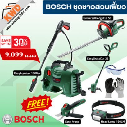 BOSCH ชุดชาวสวนเฟี้ยว Aquatak100+HedgeCut50+GrassCut23+EasyPrune+Head Lamp ราคาพิเศษยกชุด พร้อมลุย PRO Q3/2025 ชุดรวมสินค้าจาก BOSCH ของแท้ ลงทะเบียน ONLINE พร้อมขอแถมจัดหนัก จัดเต็ม จากราคาเต็ม 11,410 เหลือ 9,099 ในชุดประกอบไปด้วย 1x BOSCH EasyAquatak100 เครื่องฉีดน้ำแรงดันสูง 100บาร์ ก้านยาว 1x BOSCH UniversalHedgeCut50 เครื่องตัดแต่งกิ่งไม้ไฟฟ้า 1x BOSCH EasyGrassCut 23 ครื่องเล็มหญ้าไฟฟ้า 1x BOSCH EasyPrune กรรไกรตัดกิ่งไม้ไร้สาย 3.6V 1x BOSCH Head Lamp ไฟฉายคาดหัว 190LM 1x ถุงมีอ Safety คละไชด์ 1x แว่นตากันสะเก็ด คละยี่ห้อ คละสี