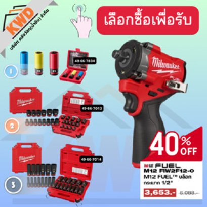 MILWAUKEE M12 FIW2F12 บล็อกกระแทกไร้สาย 1/2"(เครื่องเปล่า) พร้อมชุดบล็อคตามตัวเลือก ราคาพิเศษ PRO Q3/2025 เลือกซื้อ ชุดลูกบล็อค พร้อมรับ M12 FIW2F12 ในราคาพิเศษ 3,653 จากราคา 6,088 รายละเอียดตามตัวเลือก 1.49-66-7834 ชุดลูกบล็อกถอดล้อรถยนต์แกน 1/2" X 3 ชิ้น + M12 FIW2F12 บล็อกกระแทกไร้สาย 1/2"(เครื่องเปล่า) **รวมราคา 4,588 2.49-66-7013 ชุดลูกบล็อกกระแทก 1/2" (14 ชิ้น) + M12 FIW2F12 บล็อกกระแทกไร้สาย 1/2"(เครื่องเปล่า) **รวมราคา 4,888 3.49-66-7014 ชุดลูกบล็อกกระแทกยาว 1/2" (14 ชิ้น) + M12 FIW2F12 บล็อกกระแทกไร้สาย 1/2"(เครื่องเปล่า) **รวมราคา 5,488