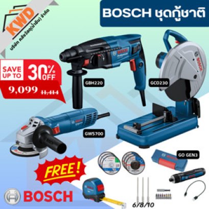 BOSCH ชุดกู้ชาติ GCO230+GBH220+GWS700 ราคาพิเศษยกชุด พร้อมลุยงาน PRO Q3/2025 ชุดรวมสินค้าจาก BOSCH ของแท้ ลงทะเบียน ONLINE พร้อมขอแถมจัดหนัก จัดเต็ม จากราคาเต็ม 11,414 เหลือ 9,099 ในชุดประกอบไปด้วย 1x BOSCH GCO230 เครื่องตัดไฟเบอร์ ตัดเหล็ก ขนาด 14นิ้ว 1x BOSCH GBH220 สว่านโรตารี่ 3ระบบ เจาะปูน กระแทก 22มิล 1x BOSCH GWS700 เครื่องเจีย เครื่องตัด ลูกหมู ขนาด 4นิ้ว 1x BOSCH GO GEN3 KIT สว่านไขควงไร้สาย พร้อมอุปกรณ์ 1x BOSCH Measurment Tape ตลับเมตร ยาว 5เมตร 3x BOSCH ใบตัดเหล็ก ขนาด 4นิ้ว 3x BOSCH ใบเจียเหล็ก ขนาด 4นิ้ว 1x BOSCH ดอกโรตารี่ SDS-Plus-1 6x100/160 1x BOSCH ดอกโรตารี่ SDS-Plus-1 10x100/160 1x BOSCH ดอกโรตารี่ SDS-Plus-1 8x100/160