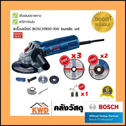 เครื่องเจียร์ไฟฟ้า BOSCH GWS 900-100 Professional มอเตอร์ 900 วัตต์เพื่อรองรับงานหนักโดยเฉพาะ ชุด bundle set พร้อมใบเจีย ใบตัด และพิเศษ carbon brush