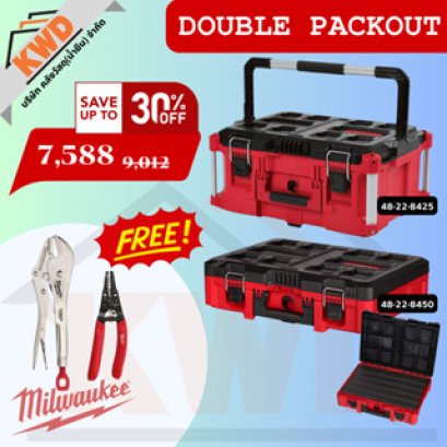 DOUBLE PACKOUT ชุดกล่องเครื่องมือช่าง Milwuakee ราคาพิเศษ PRO Q3/2025 จับชุดราคาพิเศษ พร้อมกับ Code ส่วนลดโคดดุ้ม เพื่อความคุ้มค่า พร้อมของแถมฉ่ำ ๆ รายละเอียดชุด DOUBLE PACKOUT ราคาระหว่าง 6,188 - 7,588 ตามตัวเลือก 1.ชุดกล่อง 48-22-8450 +48-22-8429 2.ชุดกล่อง 48-22-8450 +48-22-8425 3.ชุดกล่อง 48-22-8450 +48-22-8424 +48-22-8435 4.ชุดกล่อง 48-22-8450 +48-22-8435 +48-22-8396B 5.ชุดกล่อง 48-22-8450 +48-22-8435 +48-22-8436 6.ชุดกล่อง 48-22-8450 +48-22-8430 7.ชุดกล่อง 48-22-8450 +48-22-8431