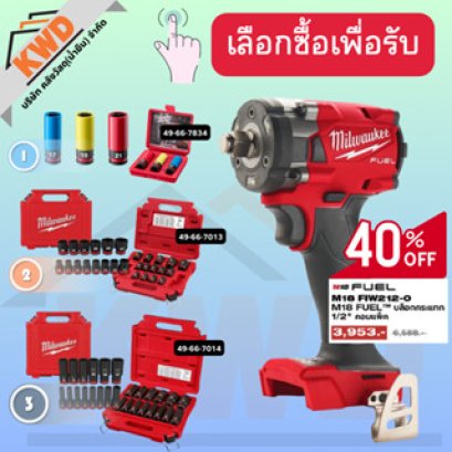 MILWAUKEE M18 FIW212 บล็อกกระแทกไร้สาย 1/2" คอมแพ็ค (เครื่องเปล่า) พร้อมชุดบล็อคตามตัวเลือก ราคาพิเศษ PRO Q3/2025 เลือกซื้อ ชุดลูกบล็อค พร้อมรับ M18 FIW212 ในราคาพิเศษ 3,953 จากราคา 6,588 รายละเอียดตามตัวเลือก 1.49-66-7834 ชุดลูกบล็อกถอดล้อรถยนต์แกน 1/2" X 3 ชิ้น + M18 FIW212 บล็อกกระแทกไร้สาย 1/2" คอมแพ็ค (เครื่องเปล่า) **รวมราคา 4,888 2.49-66-7013 ชุดลูกบล็อกกระแทก 1/2" (14 ชิ้น) + M18 FIW212 บล็อกกระแทกไร้สาย 1/2" คอมแพ็ค (เครื่องเปล่า) **รวมราคา 5,188 3.49-66-7014 ชุดลูกบล็อกกระแทกยาว 1/2" (14 ชิ้น) + M18 FIW212 บล็อกกระแทกไร้สาย 1/2" คอมแพ็ค (เครื่องเปล่า) **รวมราคา 5,788