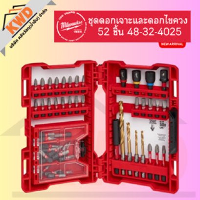 Milwaukee ชุดดอกเจาะและดอกไขควง 52 ชิ้น 48-32-4025 อุปกรณ์ในชุด -ก้านต่อดอกไขควง 3” -ดอกไขควงลูกบ๊อกซ์แกน 5/16” -ดอกไขควงลูกบ๊อกซ์แกน 1/4” -ดอกไขควงลูกบ๊อกซ์แกน 3/8” -ดอกเจาะเหล็กก้านหกเหลี่ยม 3/16” -ดอกเจาะเหล็กก้านหกเหลี่ยม 1/8”(2) -ดอกเจาะเหล็กก้านหกเหลี่ยม 1/4” -อะแดปเตอร์หัวบล็อก 3/8” แกนหกเหลี่ยม -ดอกไขควงหัวท็อกซ์ ขนาด 1” T20, T25(2), T27, T30, T40 -ดอกไขควงหัวเหลี่ยม ขนาด 1” SQ1, SQ2(4) -ดอกไขหัวแบน ขนาด 1” 1/4”, 3/16” -ดอกไขควงหัวแฉก ขนาด 1” P1, P2(5), P3 -ดอกไขควงหัวหกเหลี่ยม ขนาด 1” 3/16”, 1/4” -ดอกไขควงหัวหกเหลี่ยมชนิด Security 1/8”, 3/16”, 5/32”, 9/64” -ดอกไขควงหัวท็อกซ์ชนิด Security T10, T15, T20, T25(2), T27, T30 -ดอกไขควงหัว Spanner #6, #8, #10, #12 -ดอกไขควงหัว Clutch G ขนาด 1” 1/8”, 3/16”, 5/32”