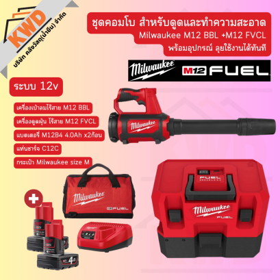 รายละเอียดสินค้าภายในชุด 1x I M12 FVCL-0 เครื่องดูดฝุ่น แบบเปียก/แห้ง ไร้สาย 12 โวลต์ (เครื่องเปล่า) 1x I M12 BBL-0 เครื่องเป่าลมไร้สาย 12 โวลต์ (เครื่องเปล่า) 2x I แบตเตอรี่ 12 โวลต์ 4.0 แอมป์อาว 1x I แท่นชาร์จแบตเตอรี่ 12 โวลต์ 1x I กระเป๋าอเนกประสงค์ Milwaukee size M