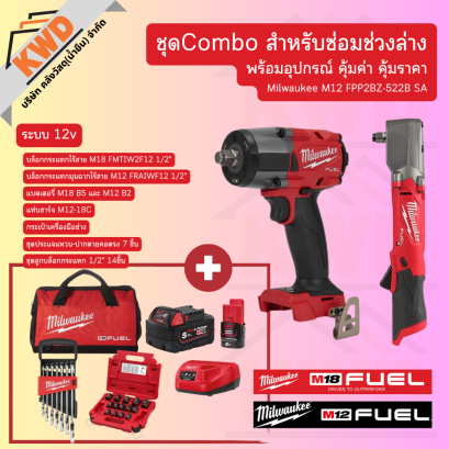 รายละเอียดสินค้าภายในชุด 1x I M18 FMTIW2F12-0X0 บล็อกกระแทกไร้สาย 18 โวลต์ 1/2" มิดทอร์ค (เครื่องเปล่า) 1x I M12 FRAIWF12-0 บล็อกกระแทกมุมฉากไร้สาย 12 โวลต์ 1/2" (เครื่องเปล่า) 1x I แบตเตอรี่ 12 โวลต์ 2.0 แอมป์อาว 1x I แบตเตอรี่ 18 โวลต์ 5.0 แอมป์อาว 1x I แท่นชาร์จแบตเตอรี่ 12-18 โวลต์ 1x I ชุดประแจแหวนข้างปากตาย 7ชิ้น 1x I ชุดลูบล็อคกระแทก 1/2" (14ชิ้น) 1x I กระเป๋าอเนกประสงค์ Milwaukee size M